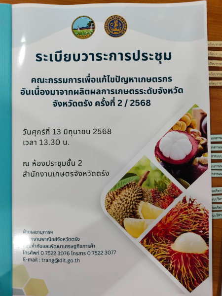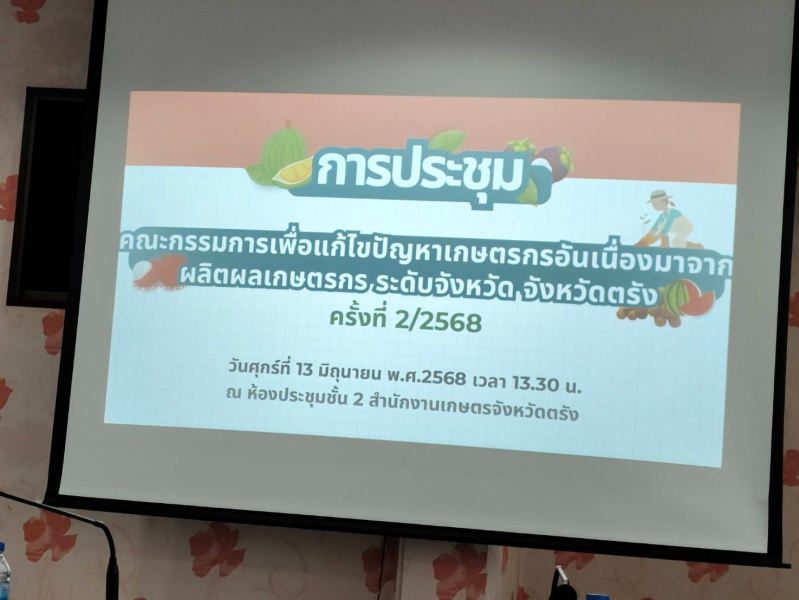 แผนบริหารจัดการผลไม้จังหวัดตรัง ปี 2568 ณ ห้องประชุมชั้น 2 สำนักงานเกษตรจังหวัดตรัง โดยมี