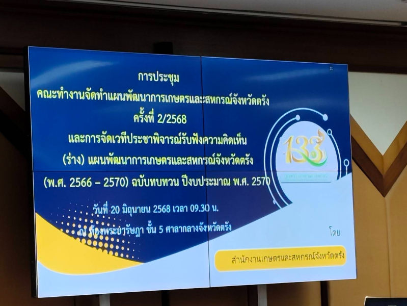 เข้าร่วมประชุมคณะทำงานจัดทำแผนพัฒนาการเกษตรและสหกรณ์ จังหวัดตรัง ครั้งที่ 2/2568 และ