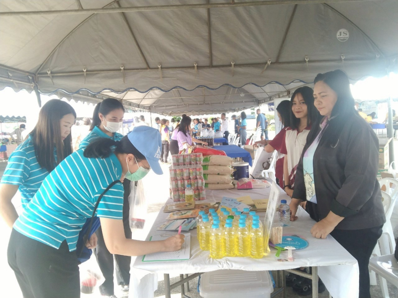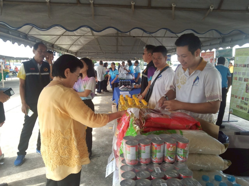 น้ำมันพืช ปลากระป๋อง กะปิ มาจำหน่ายในราคาถูกให้แก่เกษตรกรที่เข้าร่วมกิจกรรมกับบูธ