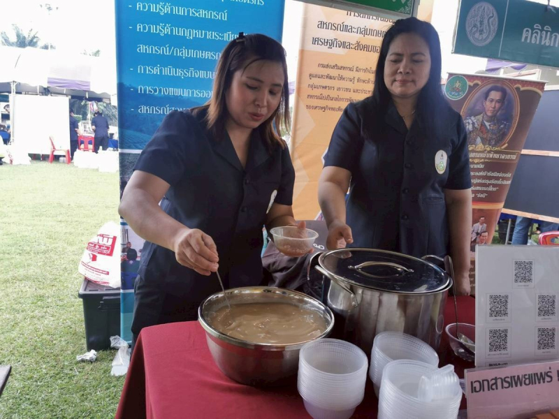 ได้นำกระปุกออมสิน น้ำยาล้างจาน ของใช้ในครัวเรือน ลอดช่องแป้งสาคู มาแจกให้กับผู้เข้าร่วมงาน และสหกรณ์การเกษตร