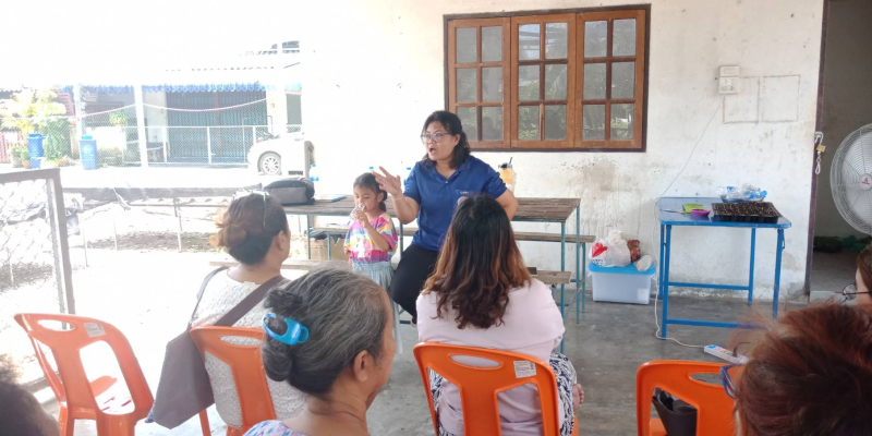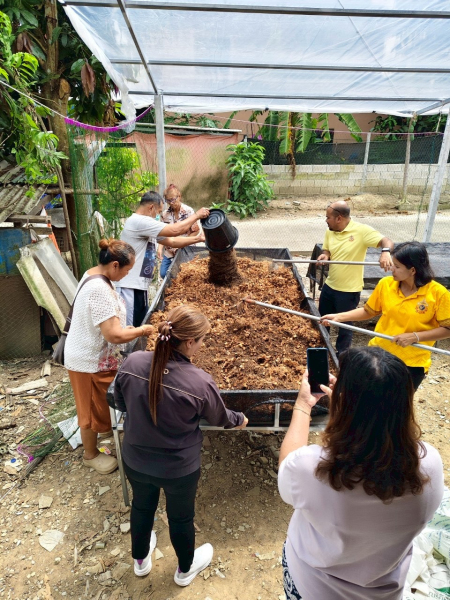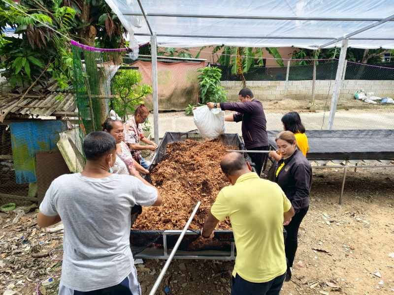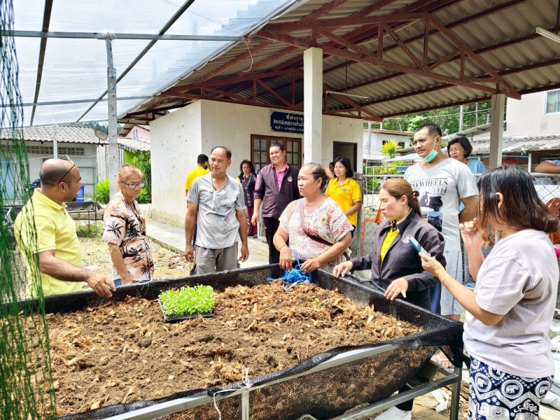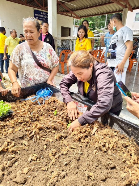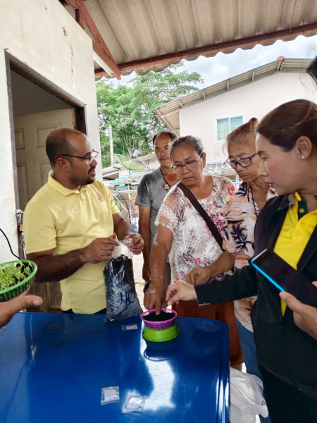 สมาชิกสหกรณ์เคหสถานบ้านมั่นคงกันตัง จำกัด ในกิจกรรมการปลูกผักปลอดสารพิษเพื่อสร้างรายได้เสริมให้กับ
