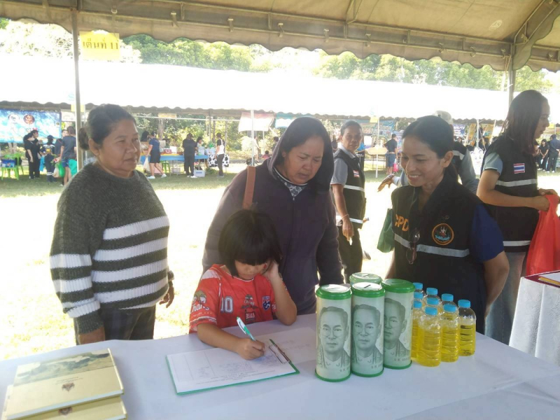 พร้อมให้คำปรึกษาเกี่ยวกับการจัดตั้งสหกรณ์และกลุ่มเกษตรกร แจกกระปุกออมสินเพื่อส่งเสริม การออม รวมถึงแจกน้ำยาล้างจานและเครื่องใช้