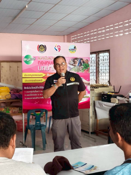 เป็นวิทยากรให้ความรู้เรื่องการรวมกลุ่มและการบริหารจัดการกลุ่ม การเข้าถึงแหล่งเงินทุนภาครัฐ นายเผด็จศึก สุพรรณรัตน์
