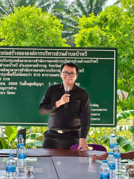 ณ ห้องประชุมองค์การบริหารส่วนตำบลบ้าหวี อำเภอหาดสำราญ จังหวัดตรัง