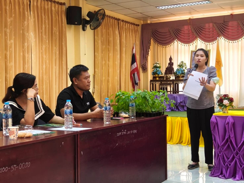นักวิชาการส่งเสริมการเกษตรชำนาญการ สำนักงานเกษตรจังหวัดตรังให้ความรู้เรื่องการปลูกพืชแซมยางเพื่อเพิ่มรายได้
