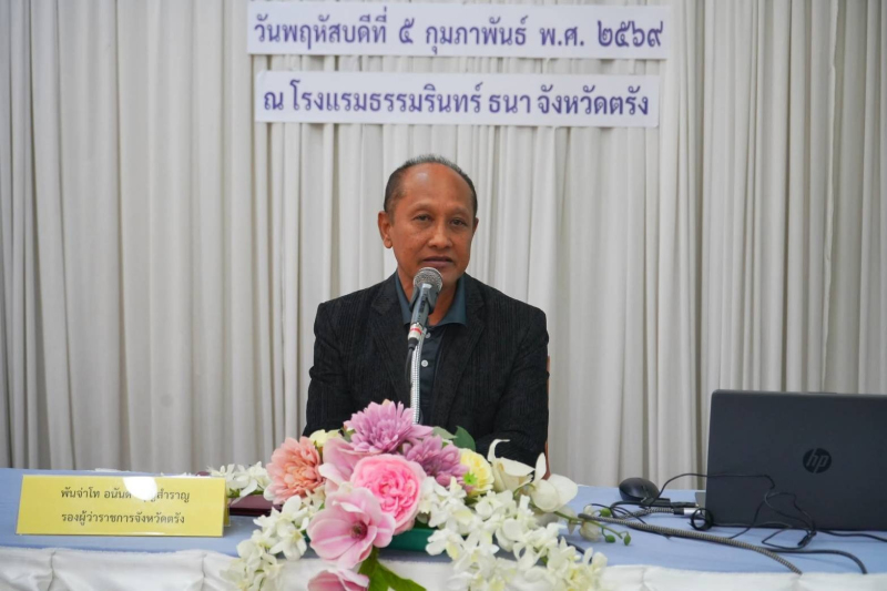 วันที่ 5 กุมภาพันธ์ 2569 นายวินัย ตุกวุ่น สหกรณ์จังหวัดตรัง มอบหมายให้ว่าที่ร้อยตรีหญิงศิราวดี ศิริรัตน์ นักวิเคราะห์นโยบายและแผน