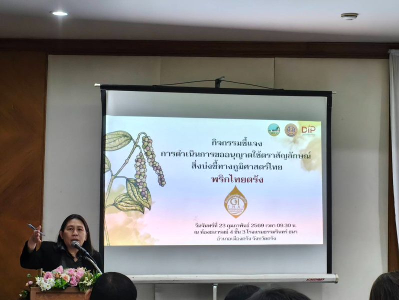 การดำเนินการขออนุญาตใช้ตราสัญลักษณ์สิ่งบ่งชี้ทางภูมิศาสตร์ไทย พริกไทยตรัง เพื่ออบรมสร้างความรู้ความเข้าใจในระบบ