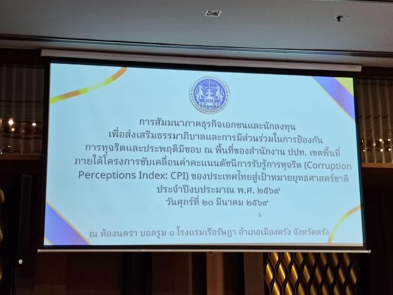 สำนักงานสหกรณ์จังหวัดตรัง เข้าร่วมรับฟังสัมมนา ภาคธุรกิจเอกชนและนักลงทุนเพื่อส่งเสริมธรรมาภิบาล