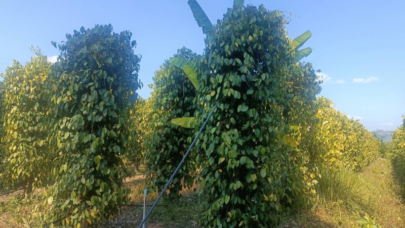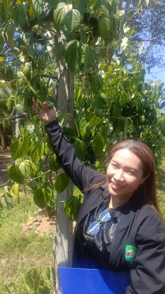 ของเกษตรกร และผู้ประกอบการพริกไทย จังหวัดตรัง ที่ขอรับรองมาตรฐานสิ่งบ่งชี้ทางภูมิศาสตร์ (GI) ณ แปลงปลูกพริกไทย